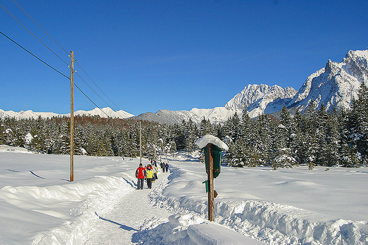 Mittenwalder Obermarkt (Fußgängerzone) im Winter